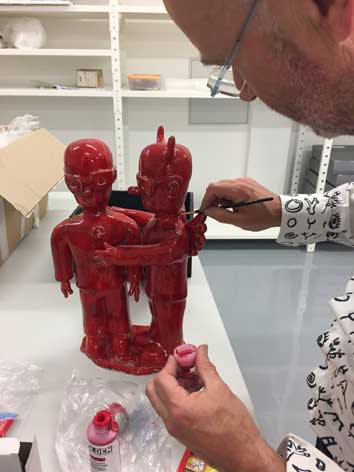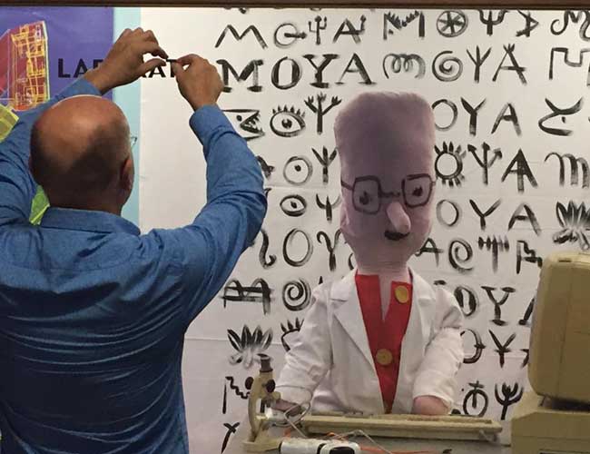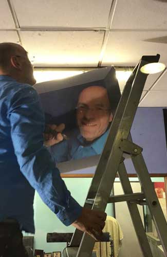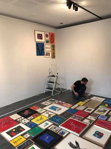 installation de l'exposition "le cas Moya" à la galerie Lympia de Nice (espace culturel departemental)