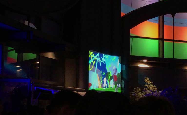 visite des îles Moya sur grand écran dans un espace dédié