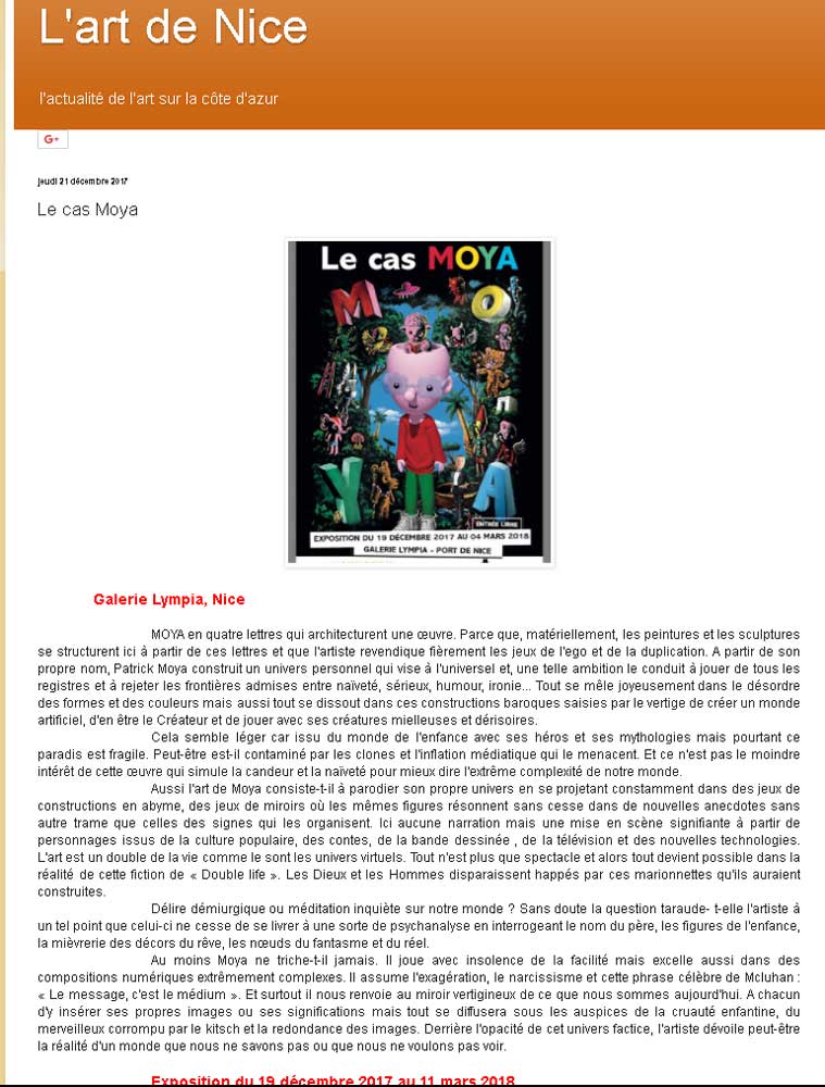 18 dec vernissage de l'exposition "le cas Moya" à la galerie Lympia de Nice (espace culturel departemental)
