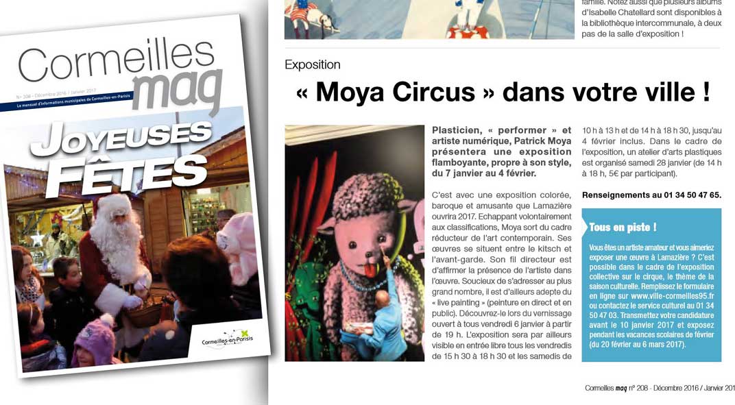 6 janvier Vernissage de l'exposition "Moya Circus" au château de Lamazière à Cormeilles en Parisis