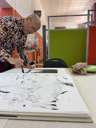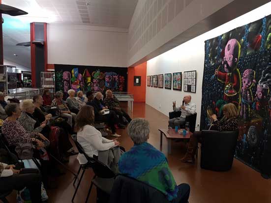lors du vernissage virtuel de l'exposition à l'Artistique