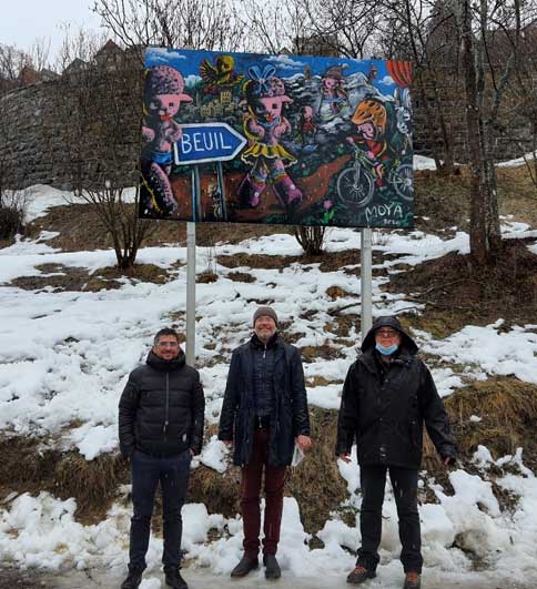 | le galeriste Franck Michel , P. Moya et Roland Giraud maire de Beuil | ||||||