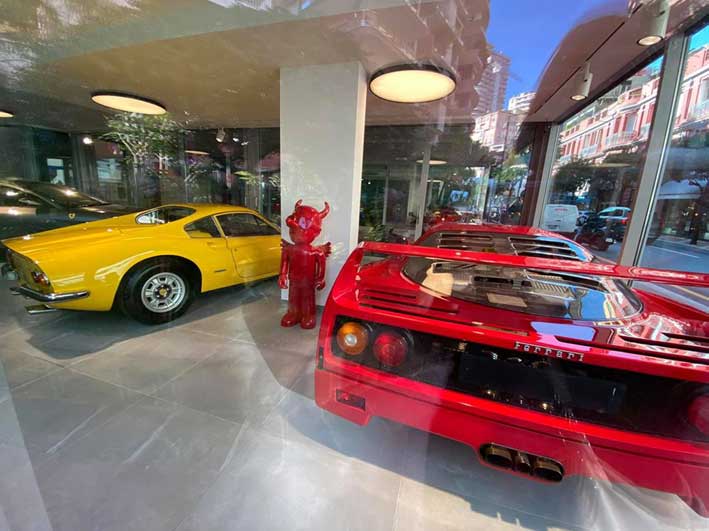 La nouvelle vitrine de DPM Motors à Monaco avec deux sculptures Moya
