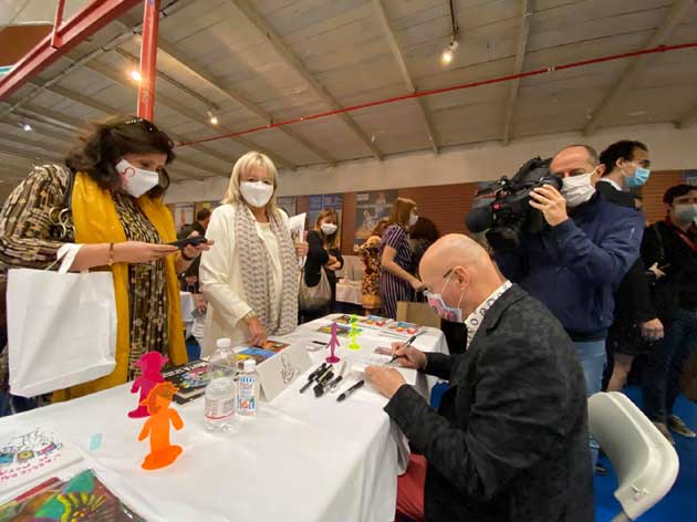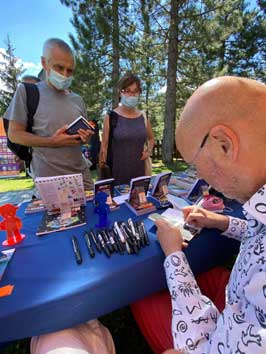 | Patrick Moya, Jean luc Gagliolo Délégué à l'Éducation, à l'Identité, au Livre et à la lutte contre l'illettrisme et Françoise Michelizza directrice de la BMVR | ||