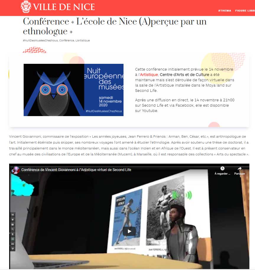 En présence de nombreux internautes via leurs avatars. Eric Léon Conservateur à l'artistique et des membres de l'équipe, Mario Gerosa journaliste et critique italien, Vincent Giovannoni conservateur en chef au Mucem, Fabrizio Bianconi journaliste, Florence Canarelli, , Ann Von Rhein, Rosanna Galvani, Enrico Taddei, Baptiste Lefebvre, David Ribet, Chaim Plantivaux, Guadalupe Vázquez, Dominik Undak, Aneli Abeyante, Chapichapo Delvalle, , Celine Lisian, Isabella Infinity... et d'autres non identifiable