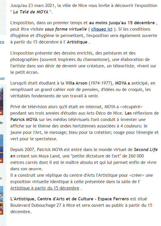 virtuel de l'exposition "La Télé de Moya" au centre d'art
