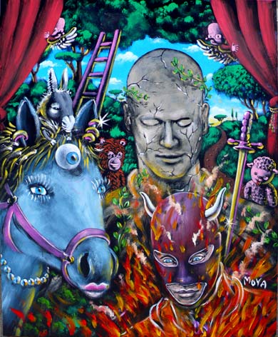 Patrick Moya è un artista francese nato nel 1955 che vive e lavora a Nizza e su Second Life. In seguito alla lettura delle teorie della comunicazione di Mac Luhan Patrick Moya cercherà di diventare la creatura invece del creatore. Queste ricerche prendono forma nel 1974 durante i suoi studi a Villa Arson quando mette in scena false trasmissioni televisive in diretta senza registrazione nelle quali è il personaggio principale, poi poserà per dieci anni come modello per le scuole di Belle Arti. Cercherà di mettere lartista al centro dellarte scrivendo il suo nome in tutte le sue opere pittoriche o digitali creando un primo avatar caricaturale per i quadri che gli danno una certa notorietà. Crea il suo primo mondo virtuale con i primi programmi di modellazione 3D, poi lo rende accessibile a tutti trasferendolo in Second Life su una superficie che occupa 5 server dove vive la metà del suo tempo incontrando gli spettatori e conducendoli la sera in visite guidate su una macchina o su un aereo virtuale.