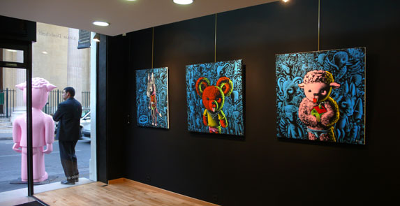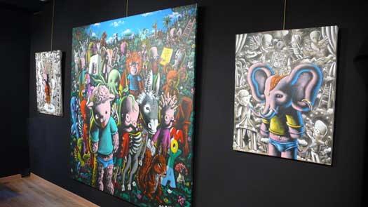 des oeuvres de Jacky Coville, Giorgio Laveri et Patrick Moya.