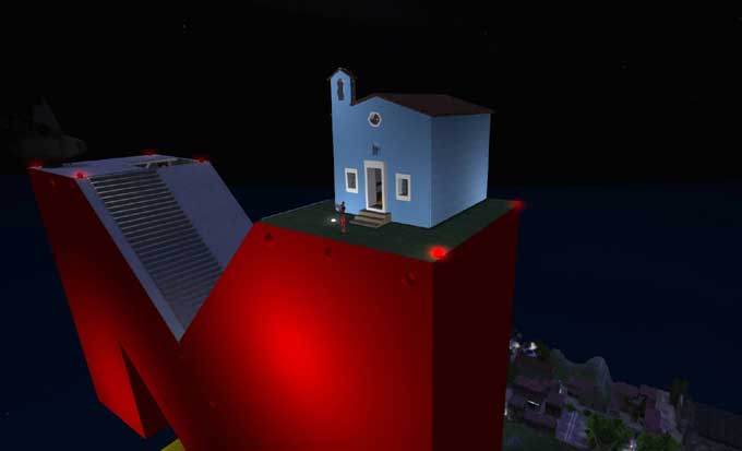 la poser au sommet de la Moya Tower puisque le thème du festival