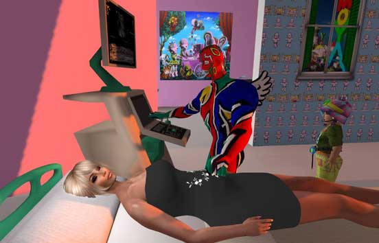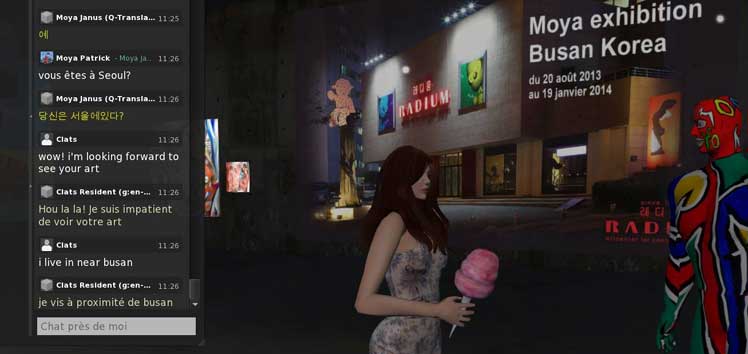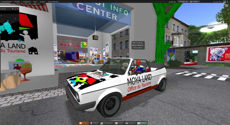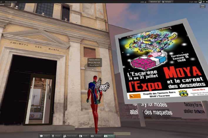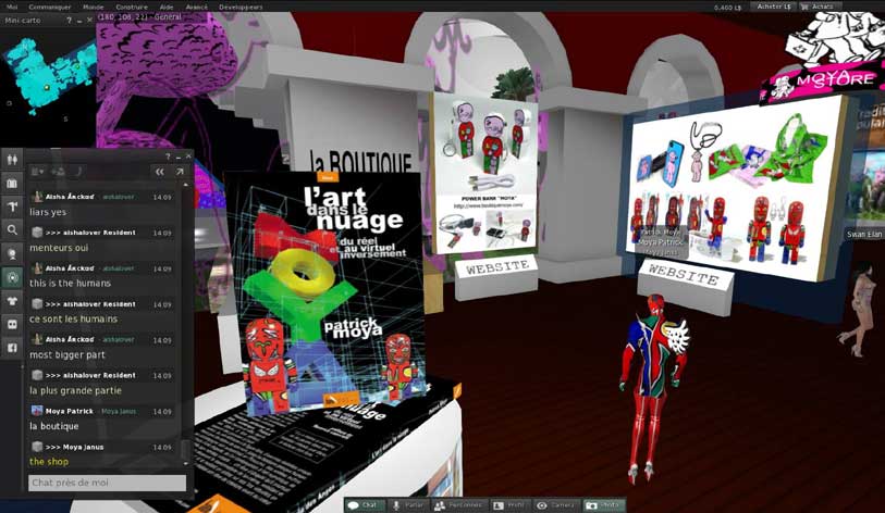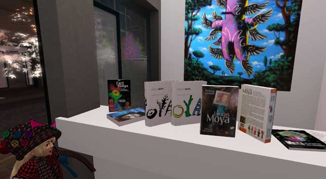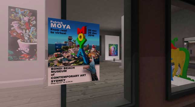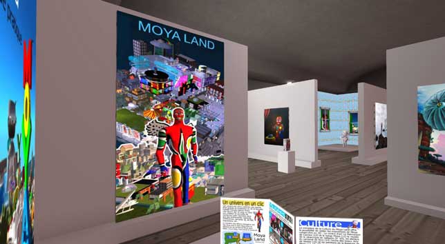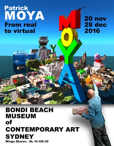 Moya. Esta semana tuve una de mis mejores experiencias en Secondlife, como ustedes saben desde mis inicios me ha gustado explorar encontrar lugares interesantes, con diferente temática, pero sin duda los que más me agradan son todos los sitios de arte y los cuales con el paso de los años han evolucionado al ritmo que la tecnología o el mismo mundo virtual lo permite. El pasado fin de semana a altas horas de la madrugada y sin tener sueño decidí entrar a SL y explorar encontré un espacio llamado Studio Moya al llegar pude ver que no era una sola galería y ni siquiera un solo sim, si no que son 4 sims llamados Moya Land, Studio Moya, Moya y Moya Museum en los cuales podemos admirar el trabajo del artista Patrick Moya. Me dejo gratamente sorprendida su trabajo, así que decidí regresar en la semana para tomar fotografías y hacer algún video, cuando volví mi grata sorpresa fue que el artista Patrick Moya se encontraba en el sitio con su avatar quien amablemente me dio un tour por el lugar donde me explico a detalle su trabajo, desde sus inicios y hasta la actualidad, sin duda he tenido una gran experiencia y honor en conocerlo. Son de las maravillas del mundo virtual poder vivir el arte y conocer al artista que está del otro lado del mundo, situaciones que en la vida real serían muy difícil de lograr. Patrick Moya es un artista francés pintor, escultor, artista digital, virtual, performance y escritor; vive en la Ciudad de Niza en Francia, estudio en Villa Arson (Escuela Nacional de Finas Artes en Niza) y hasta la fecha ha creado un sinfín de obras de arte, escrito libros y realizado diferentes proyectos los cuales podemos apreciar en esta muestra virtual. Desde los años 70s ha estado a la vanguardia en las últimas formas de medio de comunicación y tecnología en beneficio del arte. Se le considera uno de los pioneros del videoarte. Inspirado por la teoría de Marshall McLuhan creo un programa de televisión llamado Bonzour Bonzour donde es un artista de Tv. (El mensaje es el medio, el medio es el artista, yo soy el medio). Llego a Second Life desde el 2007. Ha llevado su trabajo a diferentes lugares del mundo (Corea del Sur, Taiwan, Hong Kong, Italia, Niza, Paris, Cannes), su obra ha sido plasmada en diferentes lugares y objetos, desde autos que han participado en el gran premio de Montecarlo, Capillas, en hospitales, autobuses, accesorios y hasta en la moda. En sus inicios fue modelo nudista para otros pintores en las escuelas de arte. Desde sus inicios en el mundo de arte el maneja la teoría de que el artista debe vivir en su obra de arte cosa que como me explico en Second life es posible vivir en su arte, en SL ha creado su propio mundo con su imaginación, con sus personajes, con su arte, Me siento muy identificada con esta idea, siempre lo repito cuando visito diferentes lugares con obras de diferentes artistas, es increíble la posibilidad que nos da SL de poder no solo ver el arte si no entrar en el arte. Como les comenté al inicio tuve un tour personalizado el cual grabe y quiero compartir con ustedes, me tome la libertad de crear dos videos uno con el tour y uno más solo con imágenes. " |