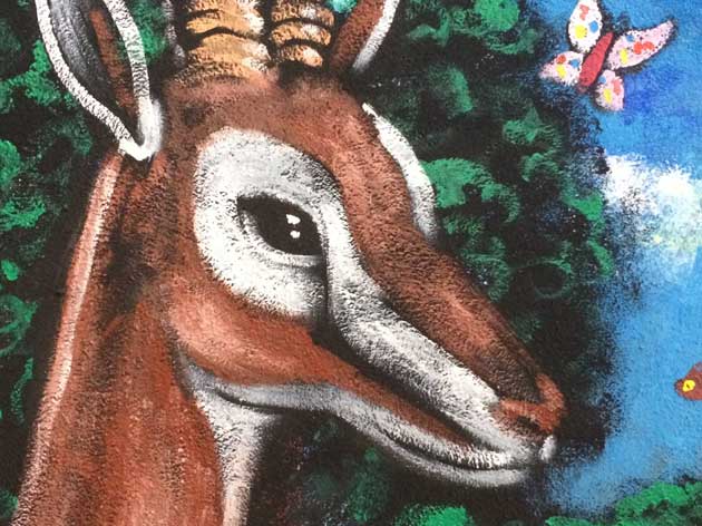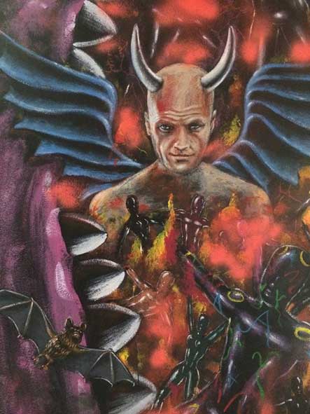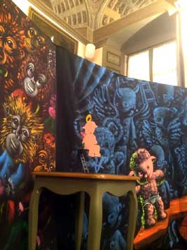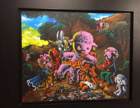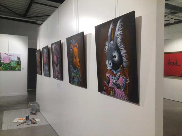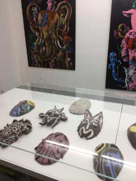 5 toiles réalisées lors de l'inauguration de l'exposition Moya