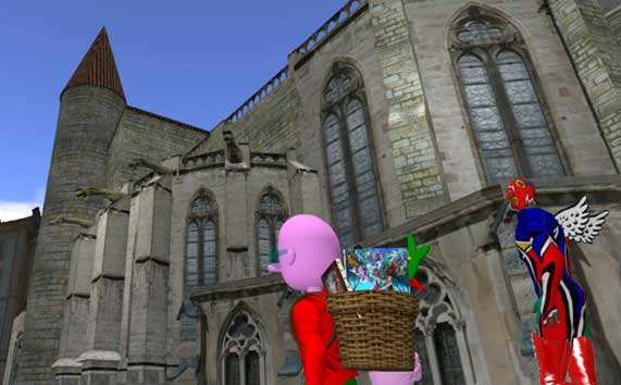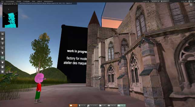 "pose de la maquette du château de Lamazière pour la prochaine expo à Cormeilles en Parisis (vernissage le 6 janvier) Chapichapo Delvalle me prend avec son taxi pour aller dans le laboratoire du Studio Moya où se fabriquent les maquettes .On pose la château pour préparer l'expo grâce à la maquette ce qui permet d'organiser un vernissage virtuel lundi soir qui sera filmé et diffusé dans l'expo réelle - petite précision Chapi ne parle jamais en voice mais uniquement par chat écrit."