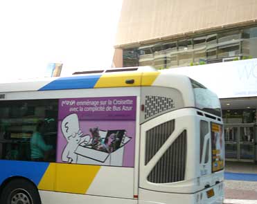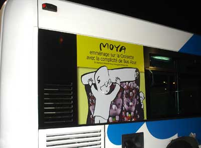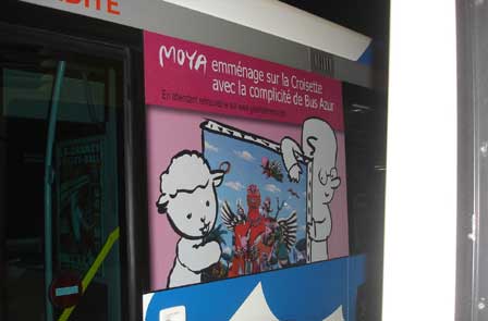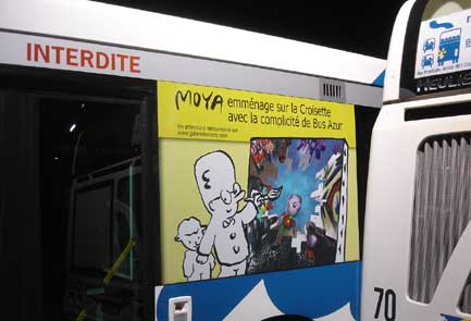 Campagne sur les bus Bus Azur (Véolia) pour annoncer le Bus Moya