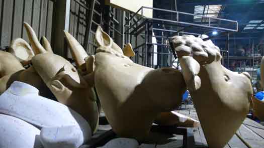 le char en préparation à la maison de Carnaval dans l'atelier du carnavalier Cédric pignataro (Nice Festivités) |