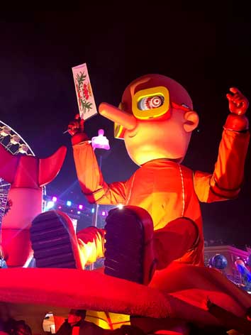 le carnaval avec ses chars virtuels passe deavnt une