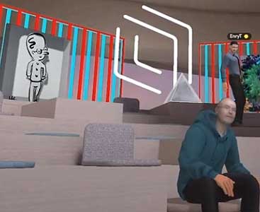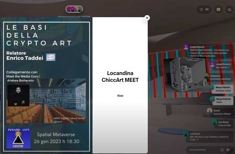 Un vernissage de la galerie ChiccArt sur Decentraland qui représente Patrick Moya sur cet univers