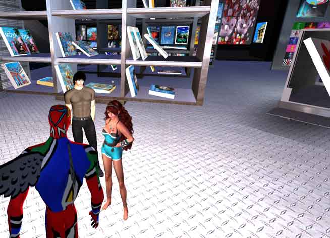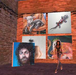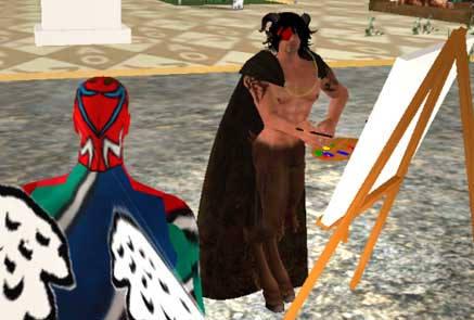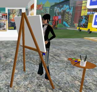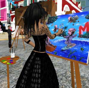 | Le quai des peintres Tous les jours et 24h/24 des peintres amateurs se pressent autour des chevalets installés sur le port pour apprendre à peindre des "Moya". Parfois c'est Moya lui même qui vient poser. Leur présence est récompensée par un gain de 2 Linden Dollar toutes les 10 minutes. Ce "camp" comme disent les initiés est l'un des mieux rémunérés de Second Life : il est souvent difficile de trouver une place libre. The dock of the painters Every day and 24/24, "amateur" painters are hurrying around the easels installed on the port : they are learning to paint some "Moya". Sometimes, Moya himself is posing for them.Their presence is rewarded by a gain of 2 Linden Dollar each 10 minutes. This "camp" is one of the best payed in Second Life : it is often difficult to find a free space. |