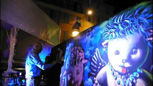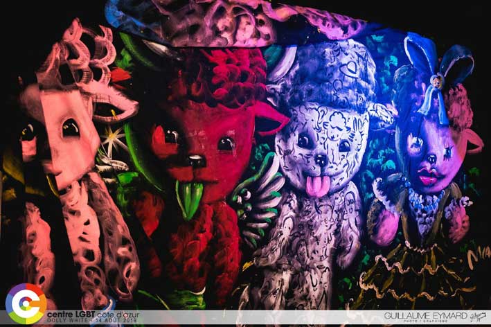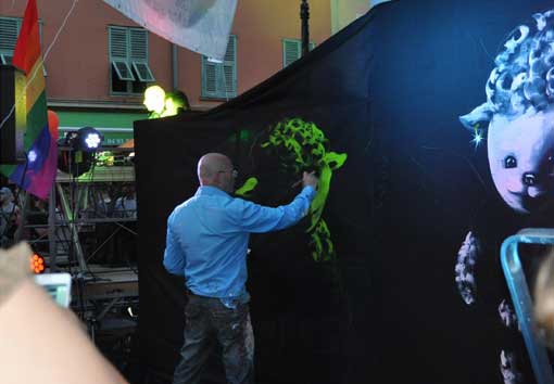 14 aout 2023 place du pin Nice - Projection et live painting pour la Dolly white party.