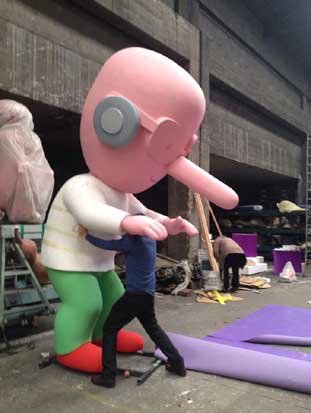 Une grosse tête "Dolly" (d'un précédent Carnaval) au village de Carnaval