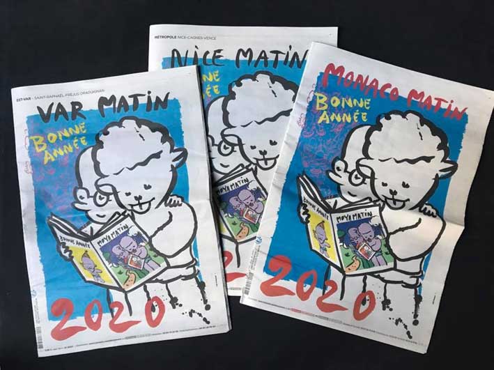 la Dolly au premier plan de la Une du nouvel an de Nice Matin, Monaco Matin, Corse Matin et Var Matin
