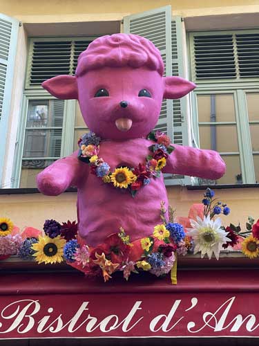 Une grosse tête de Dolly en ville à loccasion du Carnaval de Nice - au Bistrot d'Antoine