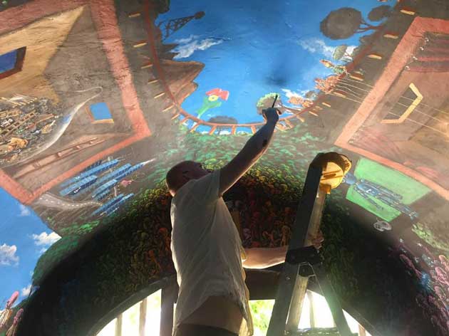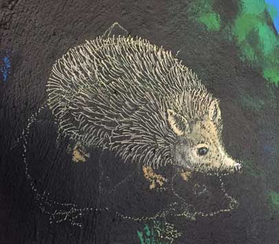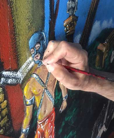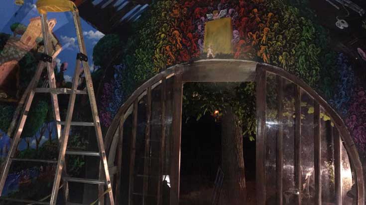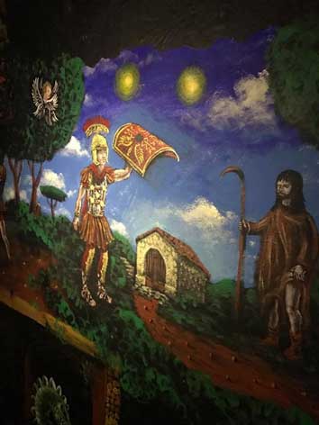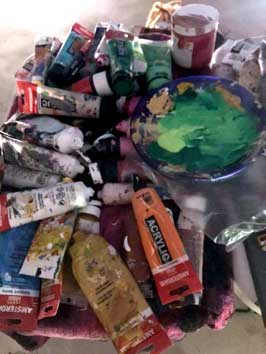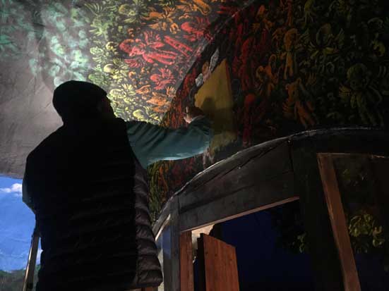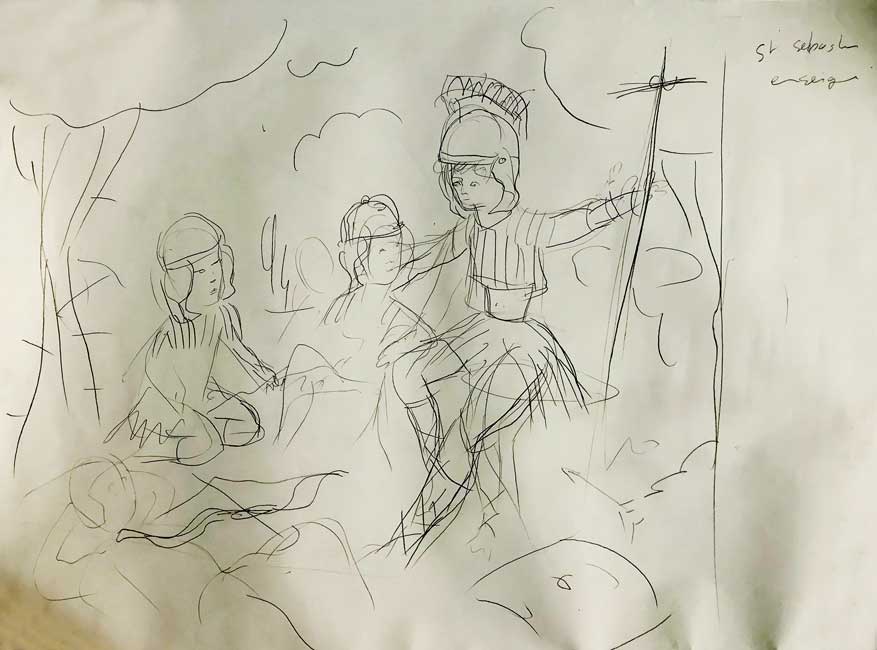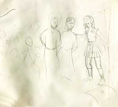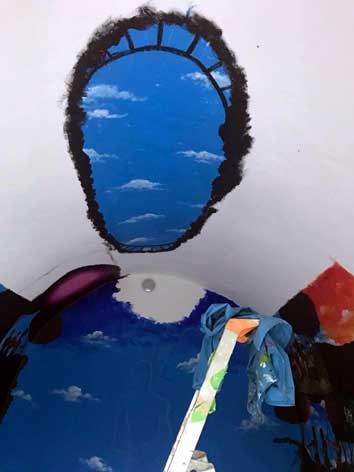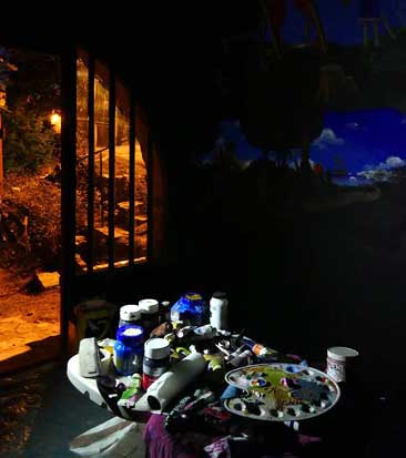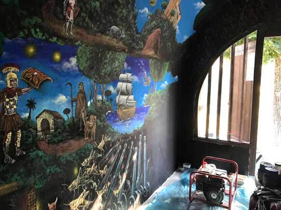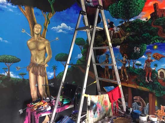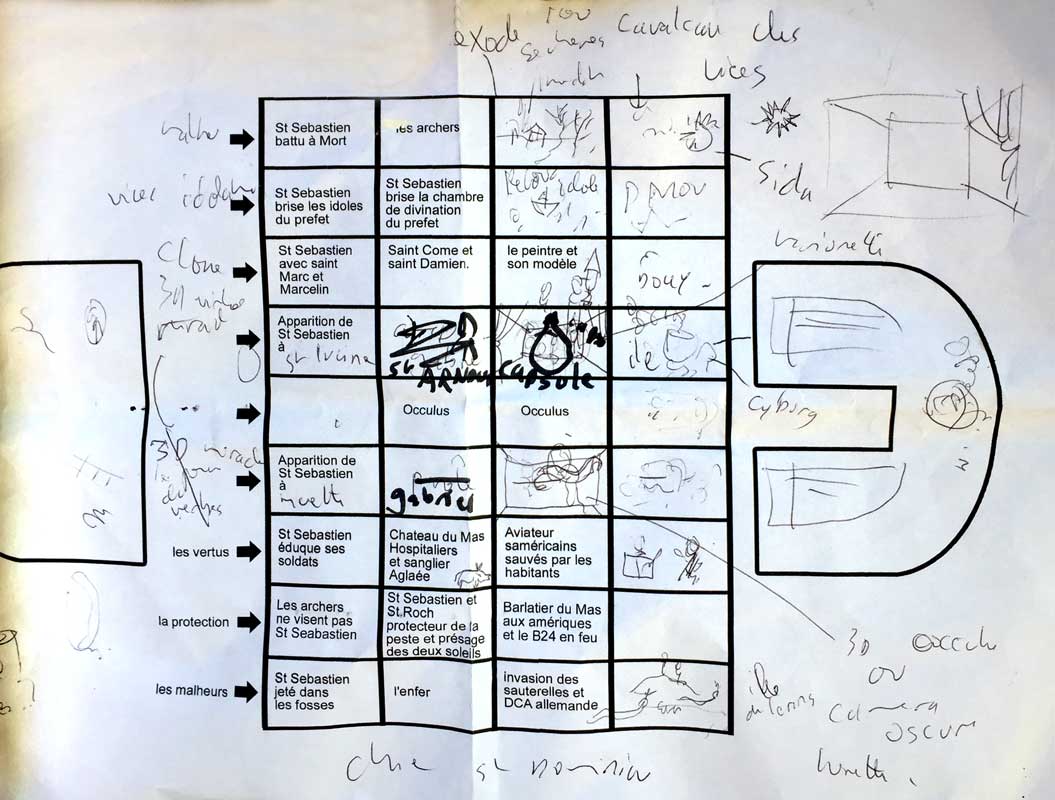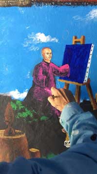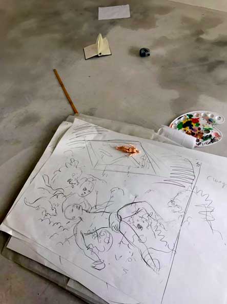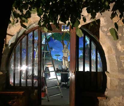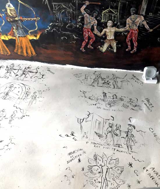 Mai 2018 - Maquette grandeur nature à l'atelier, pour le projet de "fresque" destinée à la chapelle Saint Sebastien du Mas