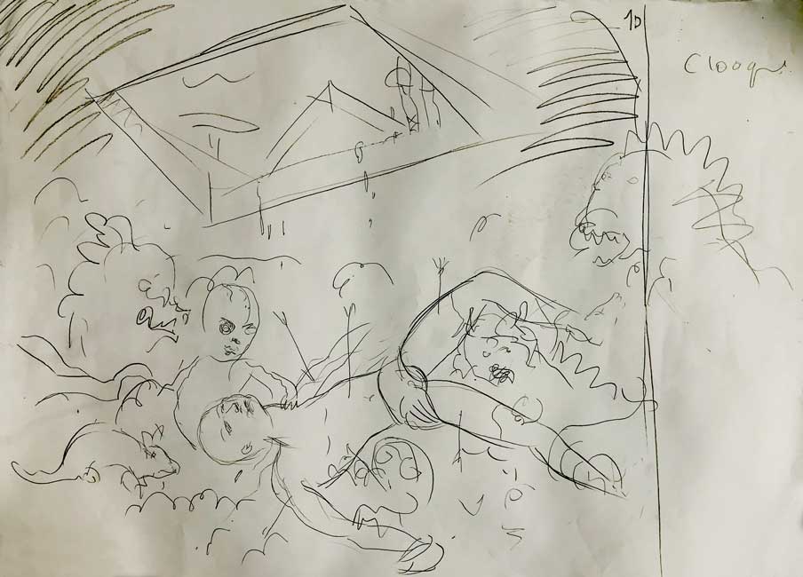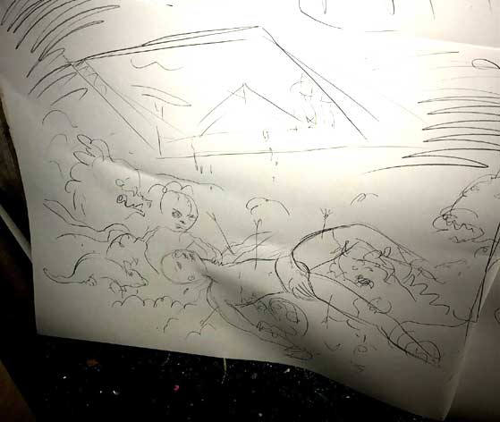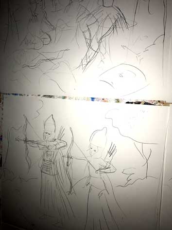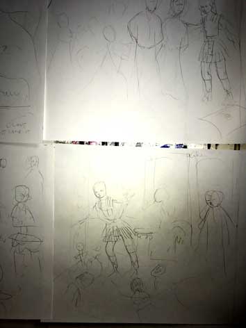 | dessins préparatoires au Mac Café du Mas | Suite du travail |