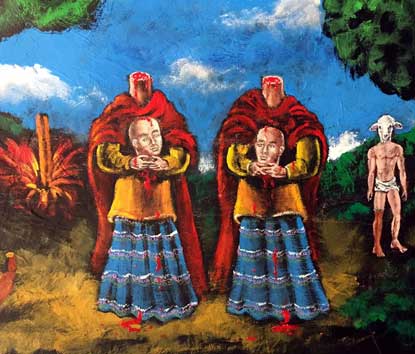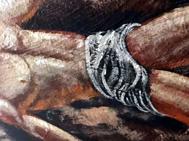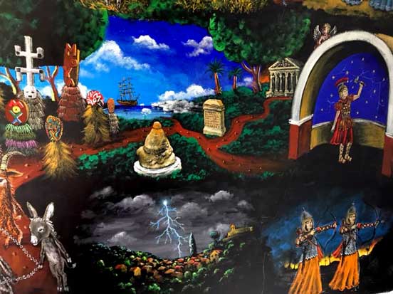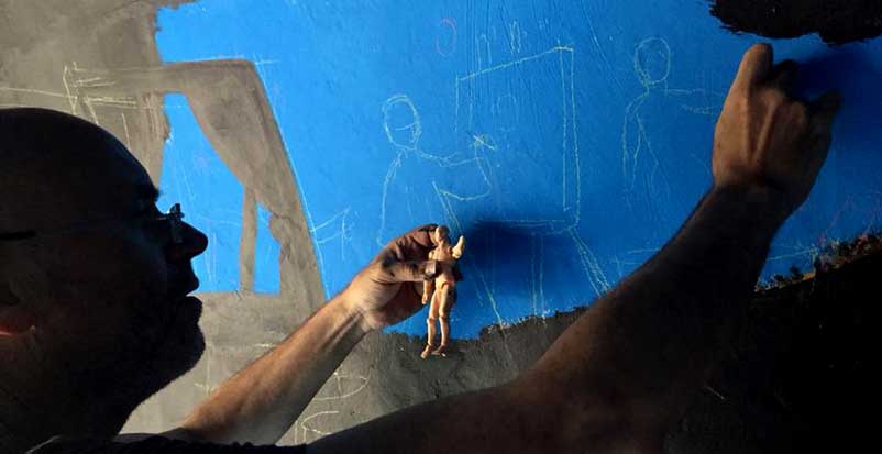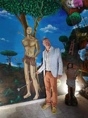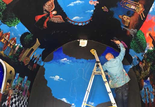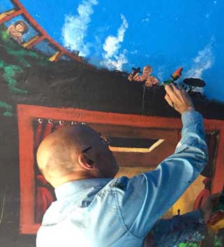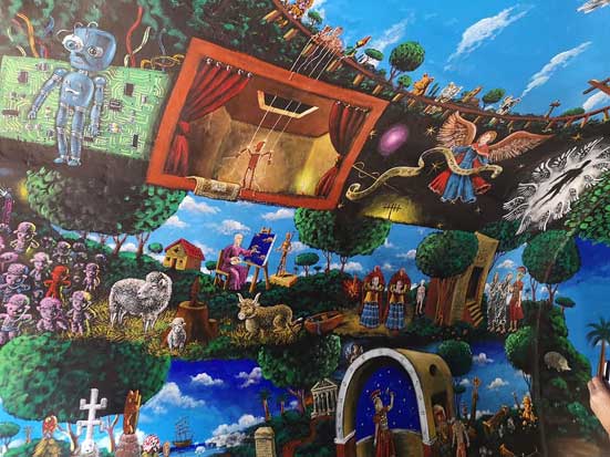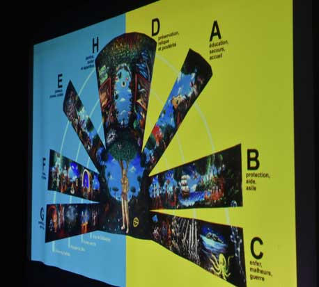 présence de l'artiste qui explique son interprétation de l'histoire de