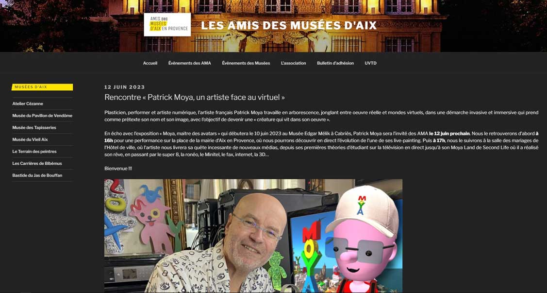 https://videopardrone.fr/blog/patrick-moya-artiste-et-createur-dans-le-metavers-depuis-15-ans/?fbclid=IwAR0Qln5hzwKK1PriIqNsXQw5yPVADvBiEPZf0WgTsM-vWuEPCIHZQcMCac4