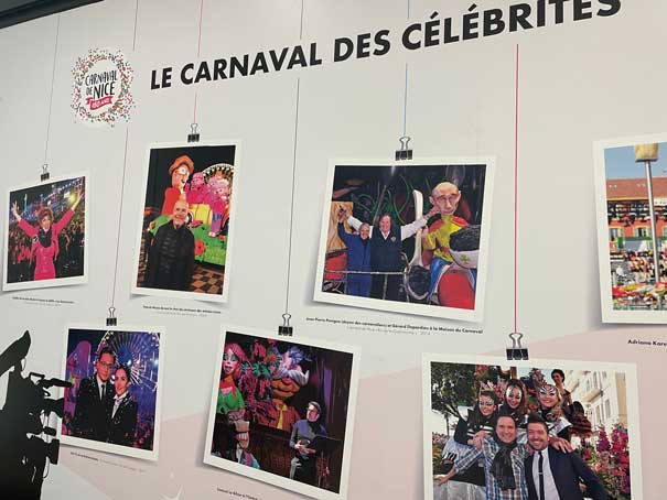 Un mur du Carnaval des célébrités par le photographe Bruno Bebert au centre commercial Nicetoile.
