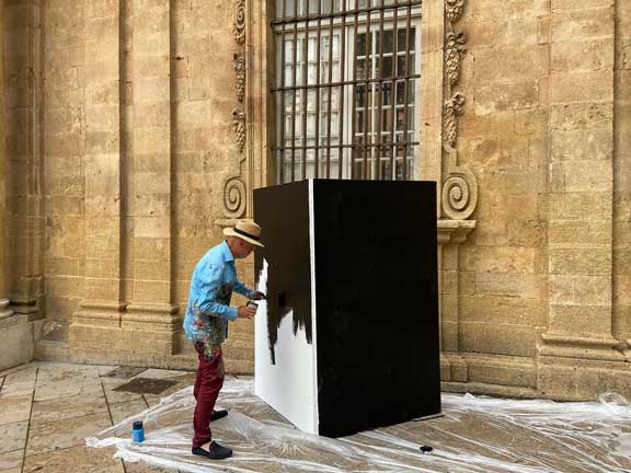 Peinture sur une 2cv destinée à une exposition dans un musée de Busan en Corée.