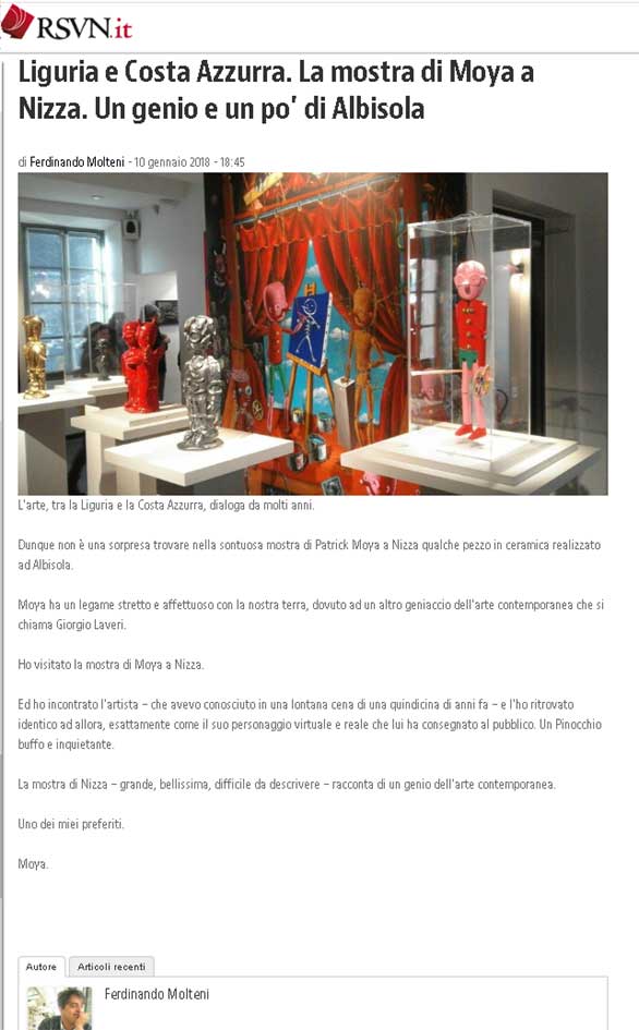 Un article de RSVN qui parle de l'exposition à Nice et aussi des céramiques réalisées à Albisola