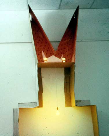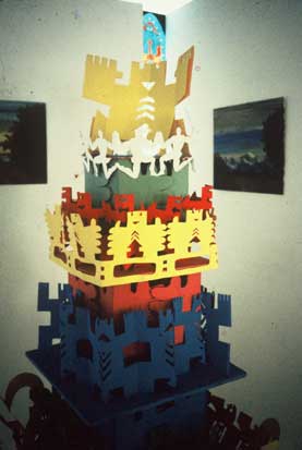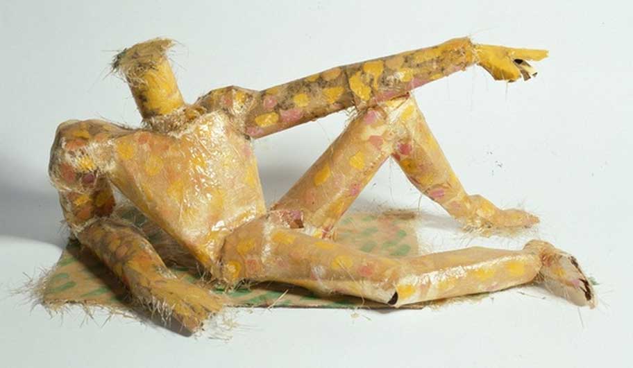 Sculpture peinture vinylique sur carton, papier, grillage et bois