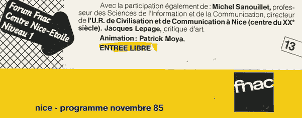 Programmes réalisés sur ordinateur, Forum FNAC, Nice