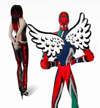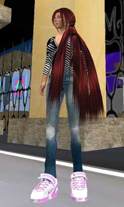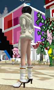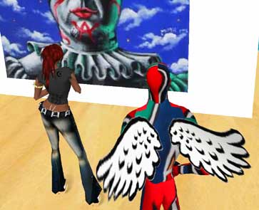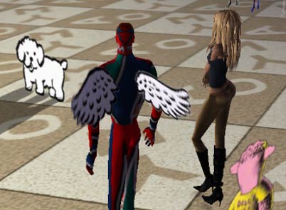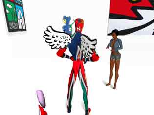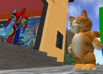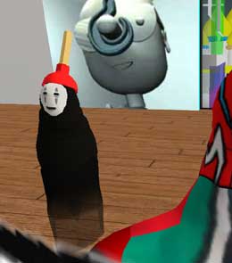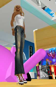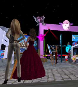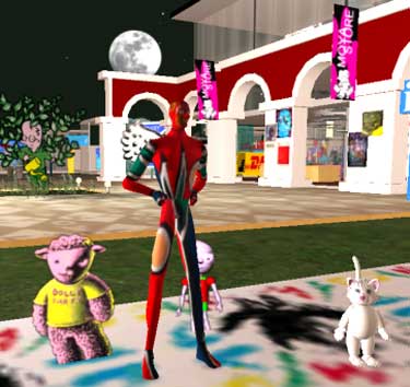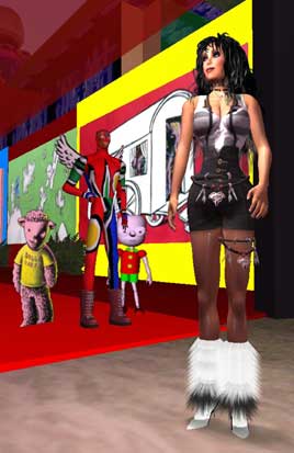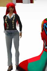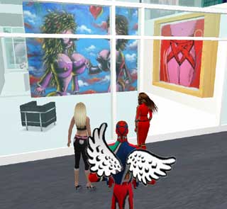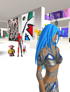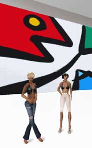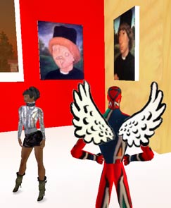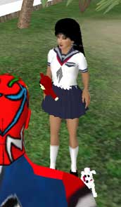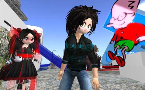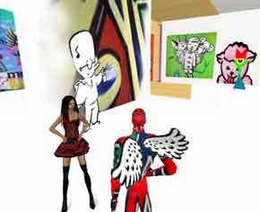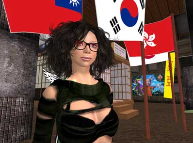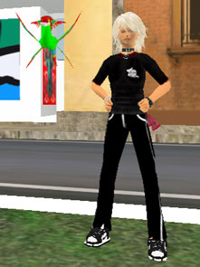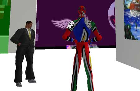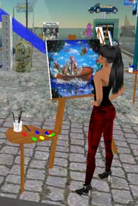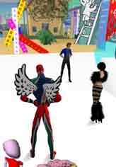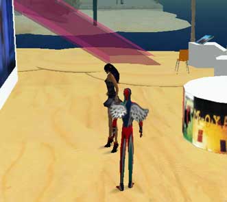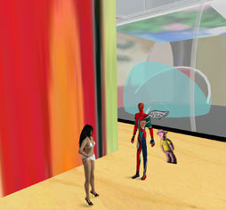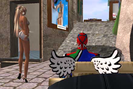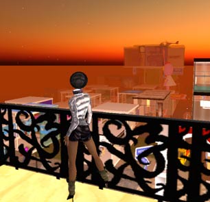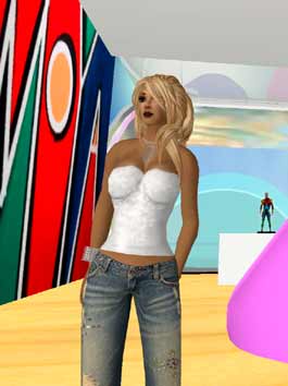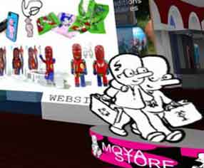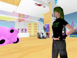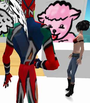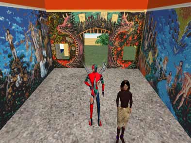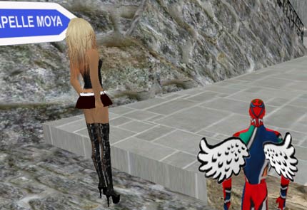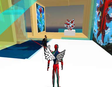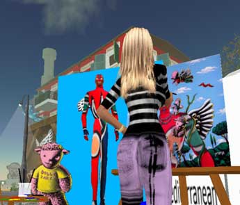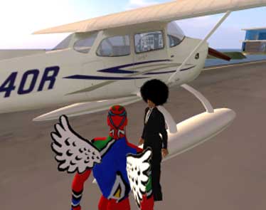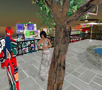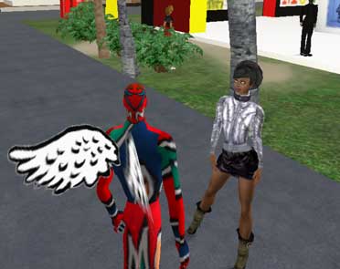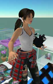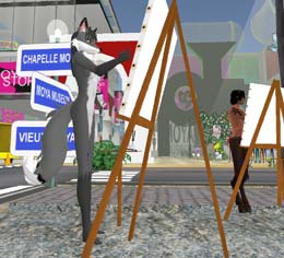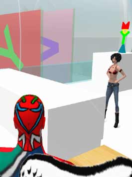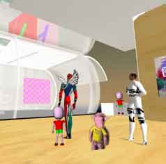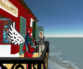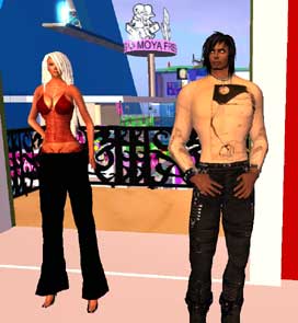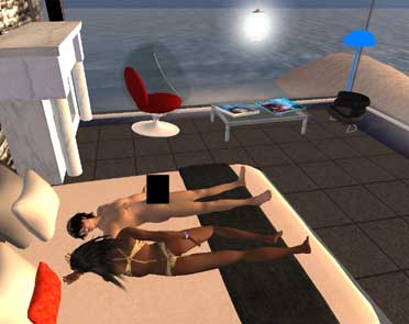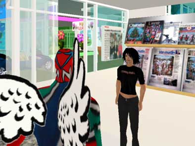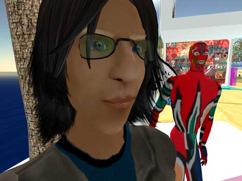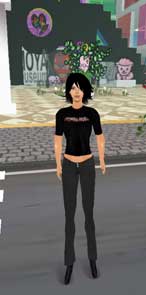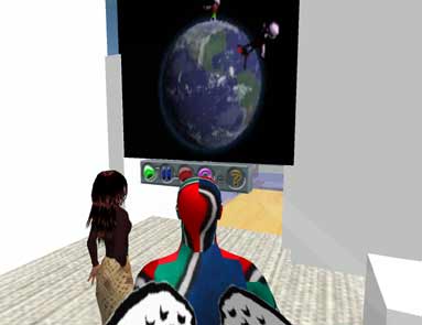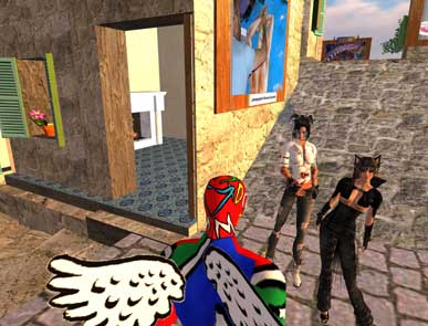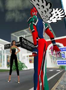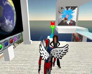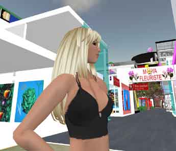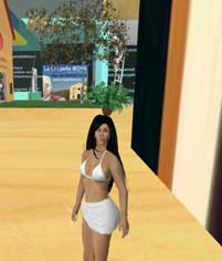 | Moya en compagnie de la doctorante canadienne dans le bureau virtuel | l'avatar de la doctorante | La maison virtuelle de Moya sur second Life | |||