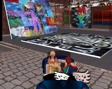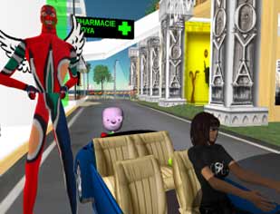 You can visit the Moya Island by car. This service allows to all visitors to borrow a free car with a simple click. In case of accident , the vehicule instantly returns to its point of origin. This service - the only one available in Second Life - is particularly popular and succesfull. |